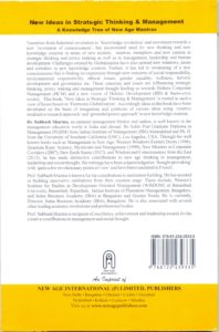 The book βNew Ideas in Strategic Thinking & Managementβ is rooted in a view of future based on βHarmonic Globalisationβ. Accordingly ideas in this book have been developed on the basis of integration and synthesis of various ideas using βcreative meditative research approachβ and βgrounded praxis approachβ to new knowledge creation.