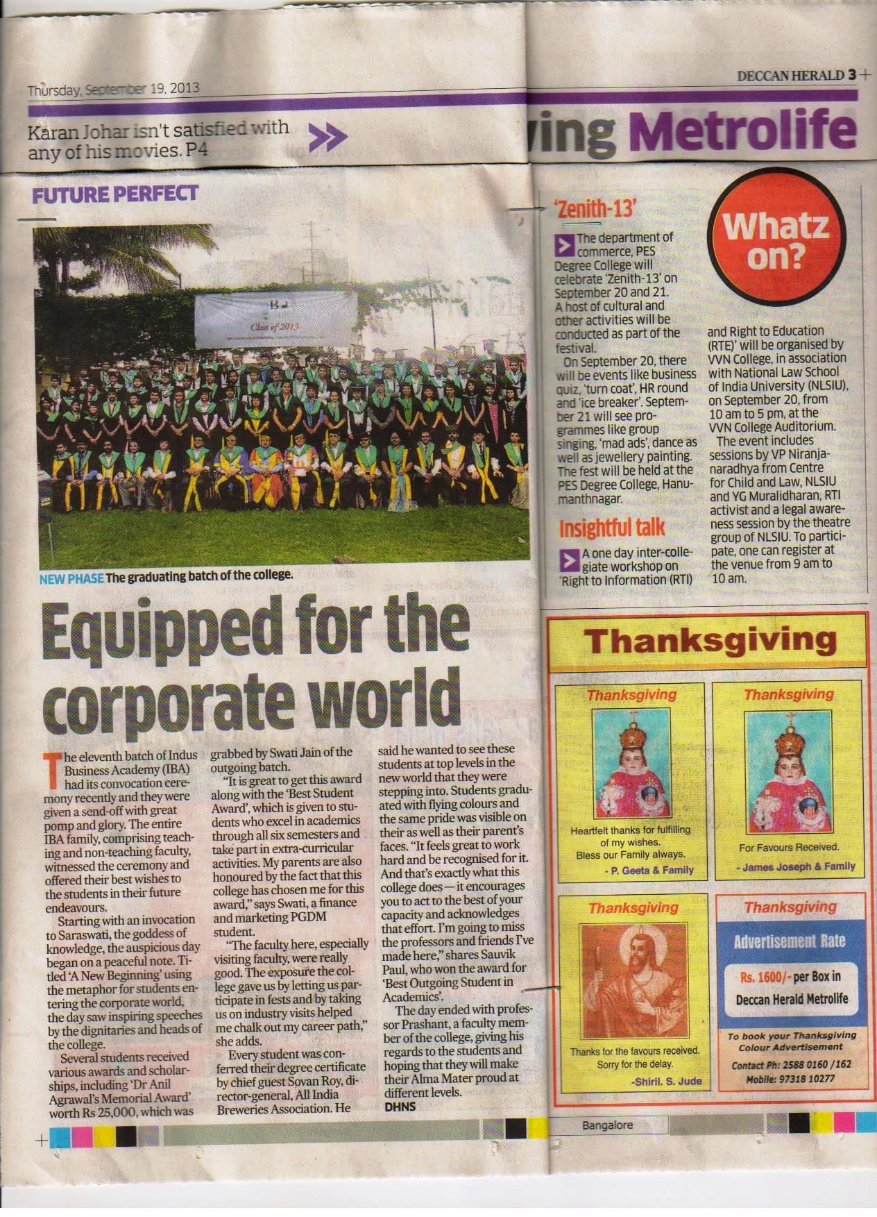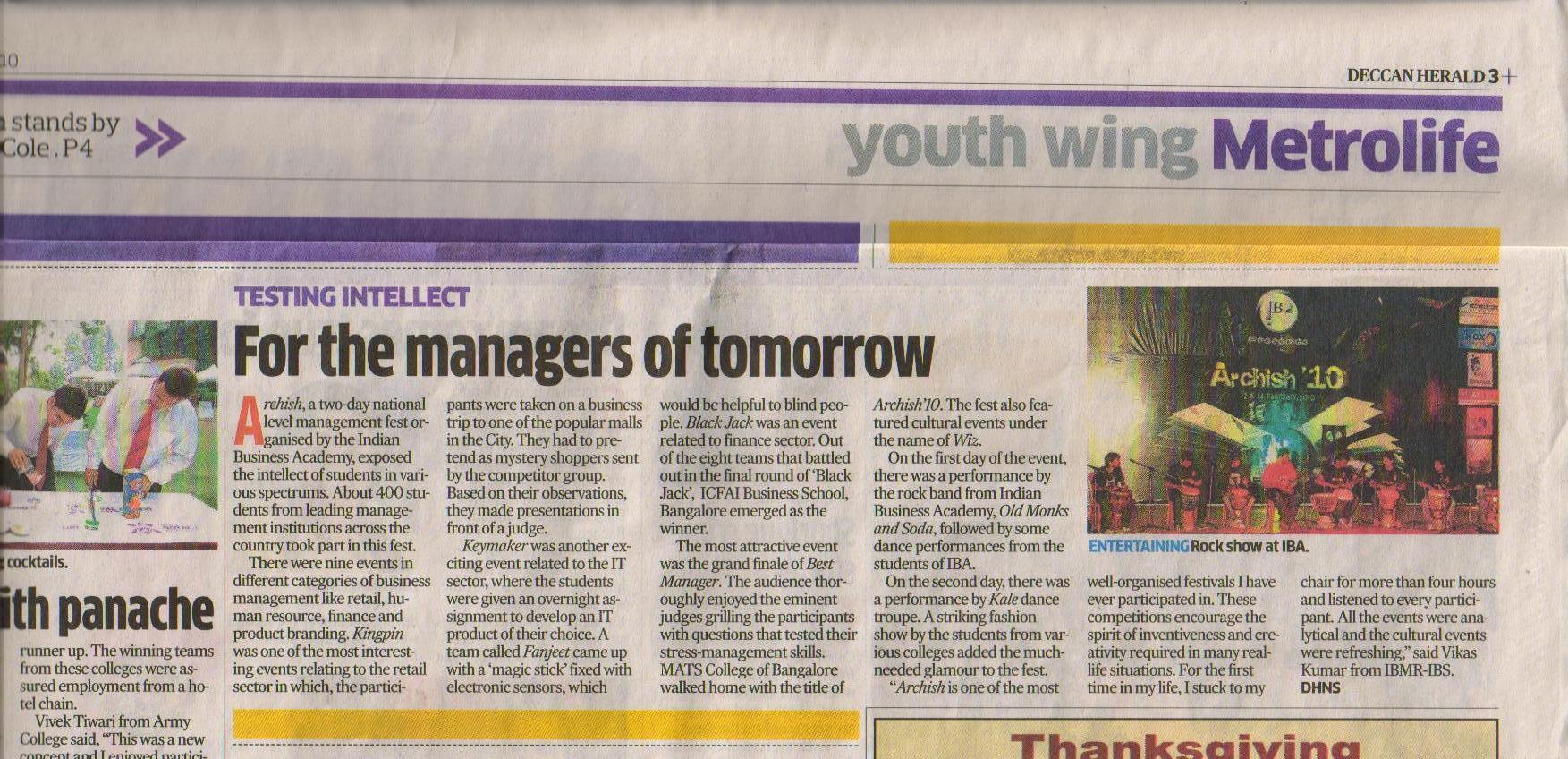 Over the years, IBA’s quality education, superior placement, and student achievements have not only attracted a strong and diverse student pool from all over the country but also ample press coverage. Given below is a selection of some such articles.
