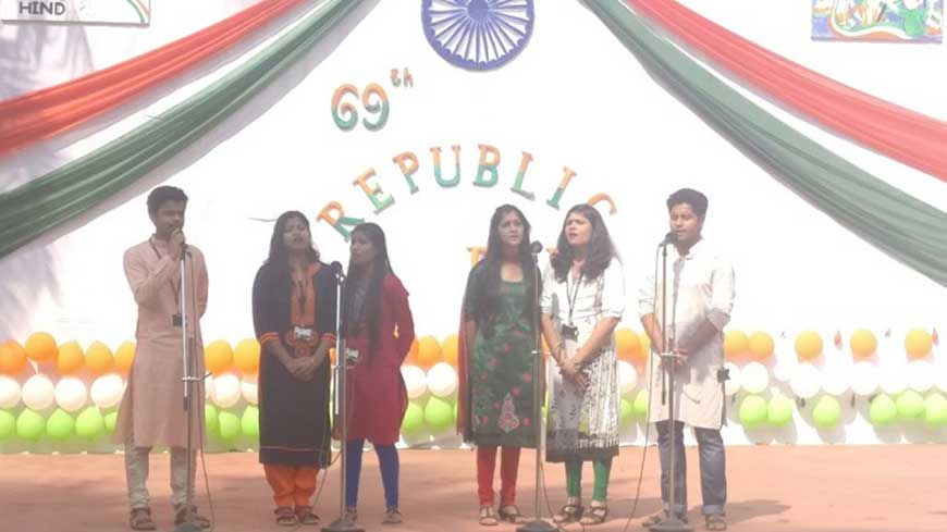 The 69th Republic Day was celebrated on 26th January 2018 at Indus Business Academy Bangalore with the same fervour. The celebration took place on a large scale, and the involvement level of both the faculty and student was noteworthy. IBA had the privilege to have on the very same day, Ex Indian army officer, Lt. Col. L Sreedhar who gave a very introspective and insightful speech in the company of our beloved Director, Dr. Subhash Sharma. Students got a different perspective and point of view to the meaning of Republic Day by listening to these two dignitaries. Flag hoisting was also done by the chief guest Lt. Col. Sreedhar. We also had Dr. Ramesh, Professor (Finance) who shared the relevance of the chakra, and its symbolic meaning, and also related it well with the present-day business environment and functions. Multiple cultural programs were showcased, by students of both the batches. The chain of events included both traditional and contemporary dance performances as well as singing by the Rainbow group of 2017-19 which included both medley and solo. Then we had a tremendous and strong drama performance which reflected the contemporary problems prevailing among the Indian minds and culture. The sole objective of the drama was to bring the change in our thought process, and accepting the transgender, as one among us with equal rights and freedom, giving them social recognition. There was also recitation of poems shared by the students both in English and Hindi. We also took a pledge, as proposed and suggested by Prof V. Suresh Chandra, to not to bully or harass anyone in the campus and to keep our campus free from all such practices. Sweet distribution was also done at the end as a symbol of celebration and spreading joy and happiness.