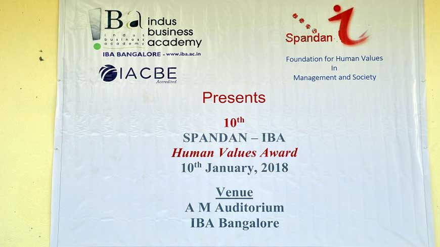 10th Spandan-IBA Human Values Award The 10th Spandan-IBA Human Values Award Program was organized by IBA, on 10th Jan 2018 at AM Auditorium, IBA. The program commenced with lighting the lamp followed by the invocation by students. Dr. G.P. Rao, …