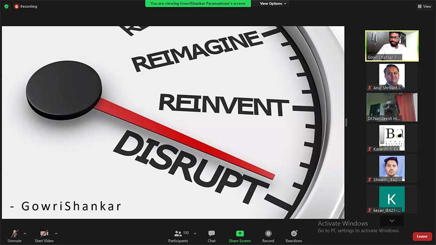 Webinar by Mr. Guru Prasad on topic – Be a Learner Date: 18th July 2020 Topic: Be a Learner Moderator: Prof. Gourish B M Speaker: Mr. Guru Prasad K S Designation: Manager – People Function Company: Mindtree The program commenced …