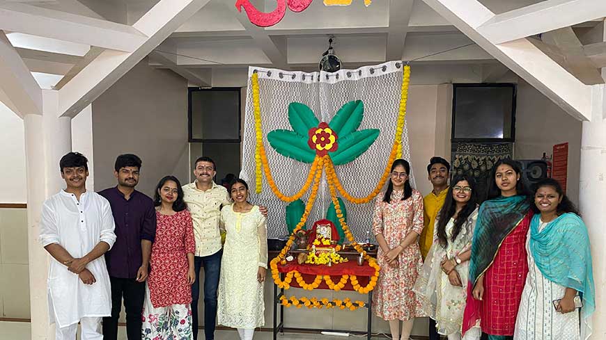 The puja, conducted with utmost reverence, infused every corner of our campus with positivity. Students, with folded hands and hearts full of aspirations, offered their prayers for academic excellence, promising careers, and rewarding internships. It was a moment of collective hope and determination, where the air was thick with the aroma of dreams taking flight.